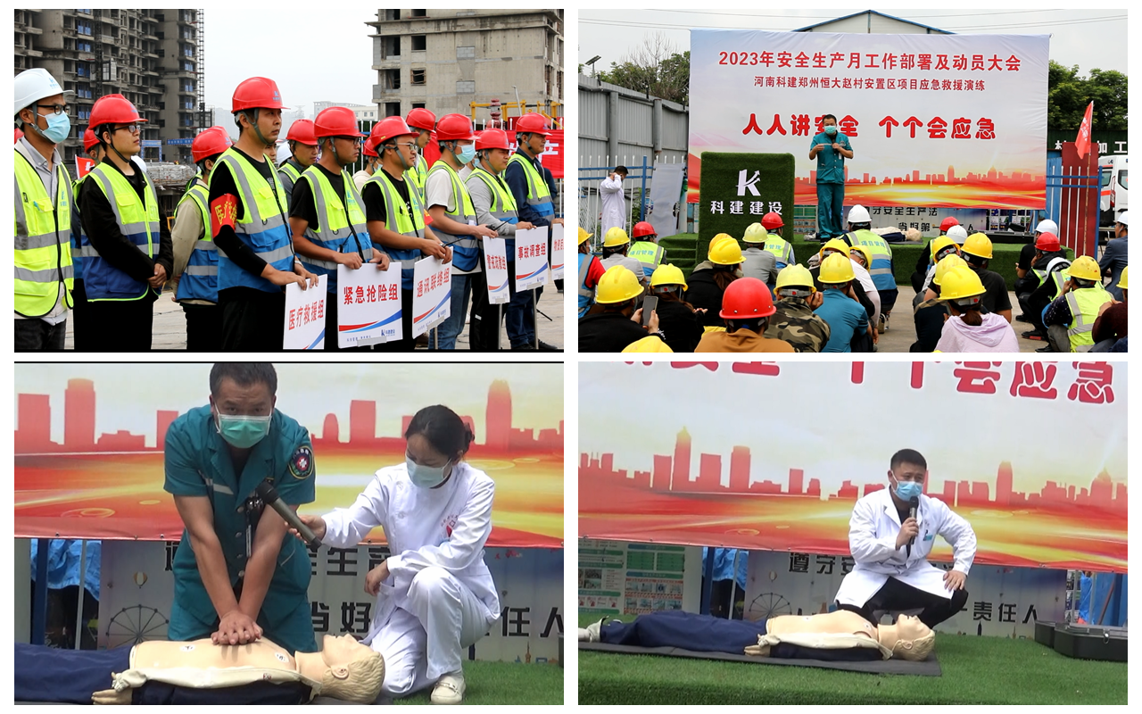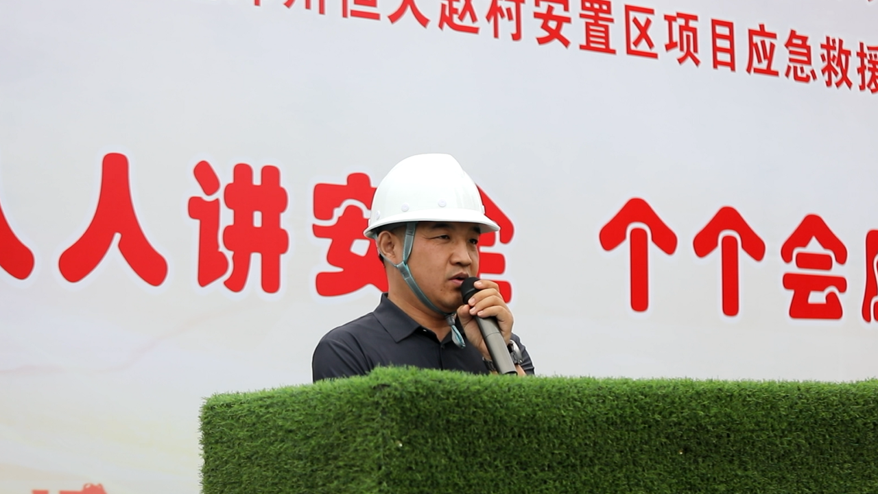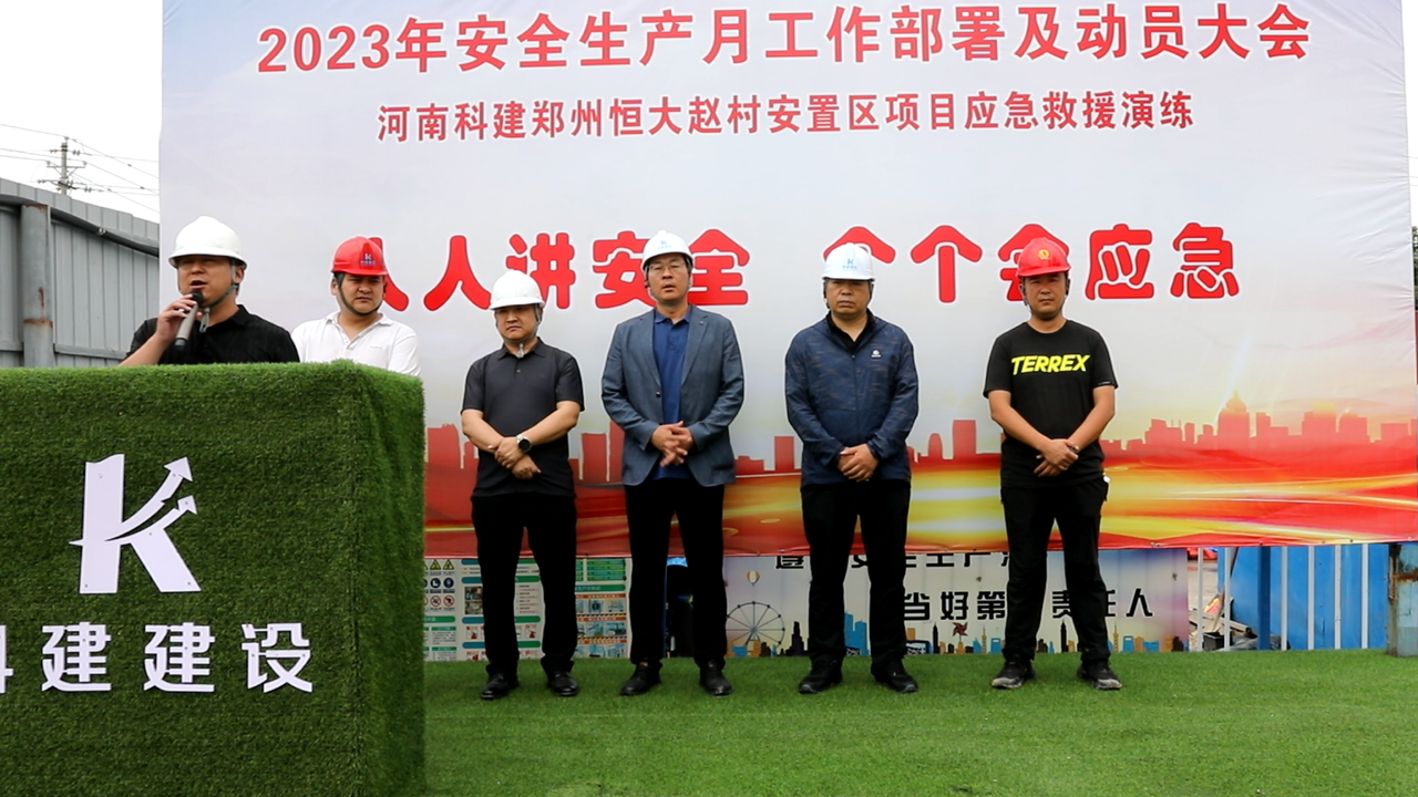 2023年5月30日上午10:00,以“人人讲安全,个个会应急”为主题的2023年“安全生产月”动员大会暨高处作业专项应急演练活动在恒大赵村安置区项目召开,建设单位意昂集团官网部经理郑志成、万安意昂集团官网咨询有限公司监理代表、公司董事兼副总经理马西锋、公司副总经理齐含钊、公司副总经理孙全明、恒大赵村安置区项目经理史伟、公司意昂集团官网部、技术部及公司所属各项目生产经理、技术负责人、安全主管,恒大赵村安置区施工现场作业人员共计200余人参加,姬涛主持活动。